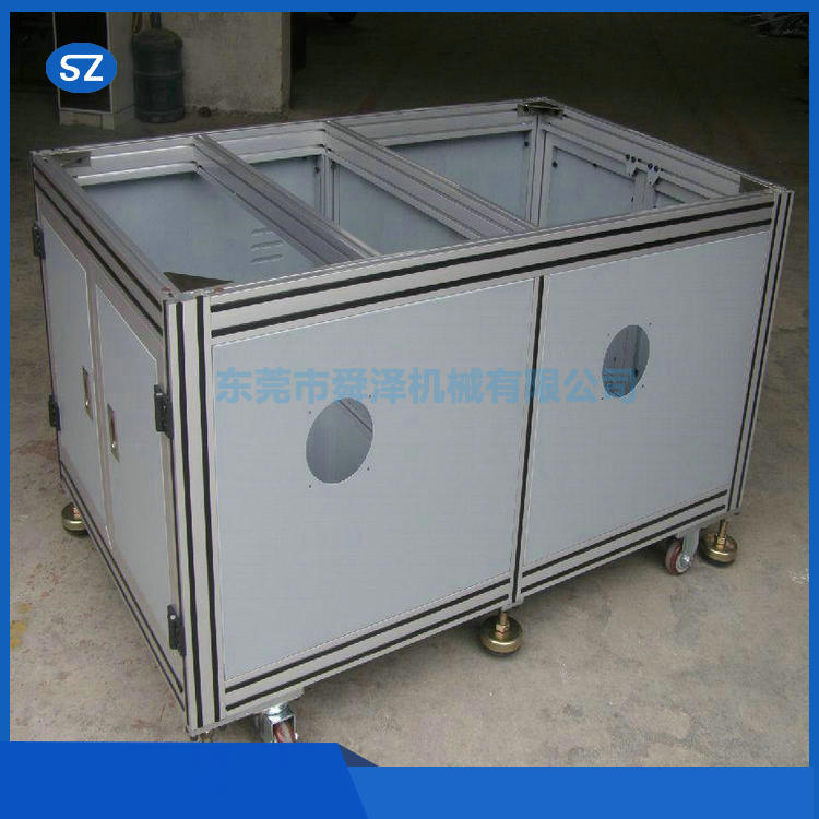 機(jī)箱長寬高三個(gè)方向的尺寸,可以根據(jù)需要定做。鋁型材機(jī)箱分為臺式和架裝式兩種。鋁型材機(jī)箱箱體由兩側(cè)板,噴塑的鋼板蓋反及前面板組裝而成。機(jī)箱兩側(cè)有散熱孔,利于儀器的散熱。機(jī)箱的內(nèi)橫梁可根據(jù)需要在前后方向固定在任意位置,便于安裝內(nèi)部元器件。 如果機(jī)箱承載重量稍大時(shí),可增加內(nèi)橫梁加固機(jī)箱。鋁型材機(jī)箱面板采用內(nèi)嵌式結(jié)構(gòu),不用螺釘固定。